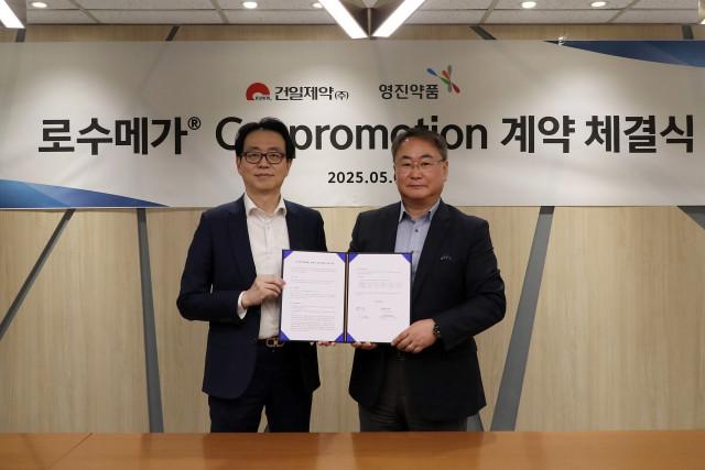 건일제약(대표 이한국)과 영진약품(대표 이기수)이 이상지질혈증 복합 치료제 ‘로수메가 연질캡슐(로수바스타틴·오메가-3 복합제)’의 국내 공동 판매를 위한 전략적 파트너십을 체결했다고 8일 밝혔다. 이번 계약에 따라 양사는 병·의원을 대상으로 공동 마케팅을 진행하며, 전국 유통은 영진약품이 맡게 된다.