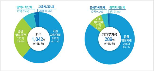• 기초지자체 환수 61.1%, 중앙행정기관은 제재부과금 85.1% 차지