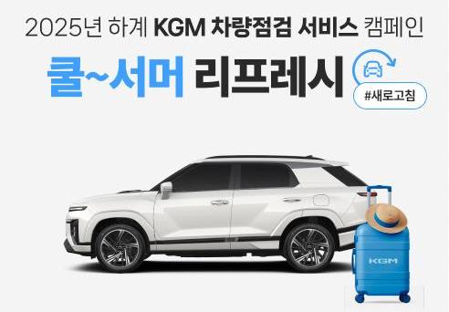 또한, 감사의 마음을 전하기 위한 고객 이벤트로 ▲에어컨 가스 충전 및 점검 수리 공임 20% 할인 ▲ 에어컨필터, 브레이크패드, 브레이크오일 교체 공임 10% 할인 ▲미쉐린 타이어 교체 시(예약) 25% 부품 할인 서비스를 시행하며, KGM 홈페이지내 내차 정보 차량등록 및 온라인 정비 예약 고객 중 추첨을 통해 할리스커피 기프티콘(200명/2잔)을 제공한다.