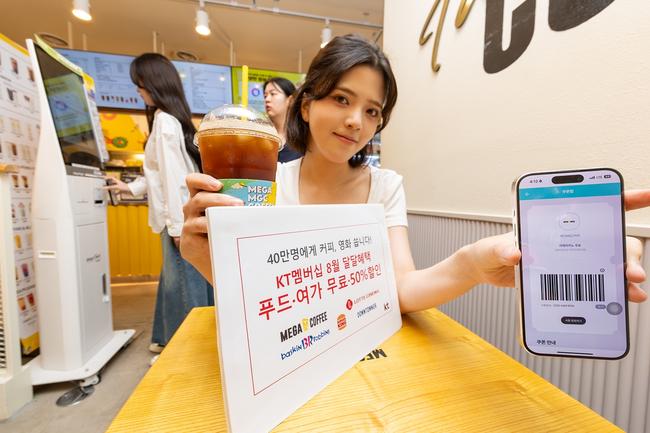 KT는 멤버십 고객을 대상으로 `메가MGC커피 ICE 아메리카노`와 `롯데시네마 영화 예매` 무료 쿠폰 총 40만 장을 증정한다.