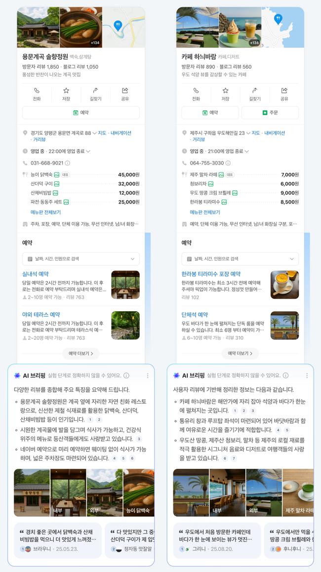 또한 음식점·카페뿐 아니라 숙박, 미용, 명소 등 다양한 업종으로 커버리지를 확대해 연내 두 자릿수 업종에 AI 브리핑을 적용할 방침이다.