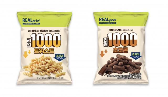 먼저, ‘리얼프라이스’ 1000원 스낵 2종은 △트위스트 △초코콘이다. 트위스트는 꼬여 있는 독특한 모양에서 시각적인 재미를 주는 동시에 한입 베어 물었을 때 느껴지는 바삭한 식감이 강점이다. 초코콘은 진하게 코팅된 초콜릿이 콘 스낵 위에 풍성하게 입혀져 달콤함과 깊은 풍미를 동시에 느낄 수 있다.