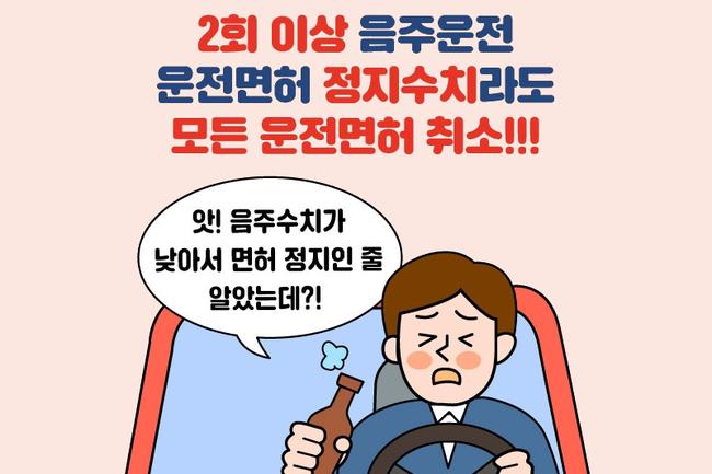 • 도로교통법상 2001년 6월 30일 이후 2회 이상 음주운전자는 면허 정지 아닌 ‘취소’ 규정