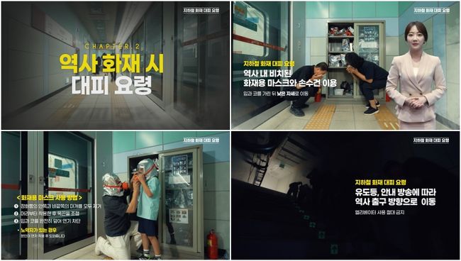 역사 내 화재 대응 요령에는 화재용 마스크 등 안전장비 사용법, 유도등·안내방송에 따른 외부 이동 절차가 포함됐다. 이용객들이 당황하지 않고 신속히 안전하게 대피할 수 있도록 시간 흐름에 따른 설명 형식을 취한 것이 특징이다.
