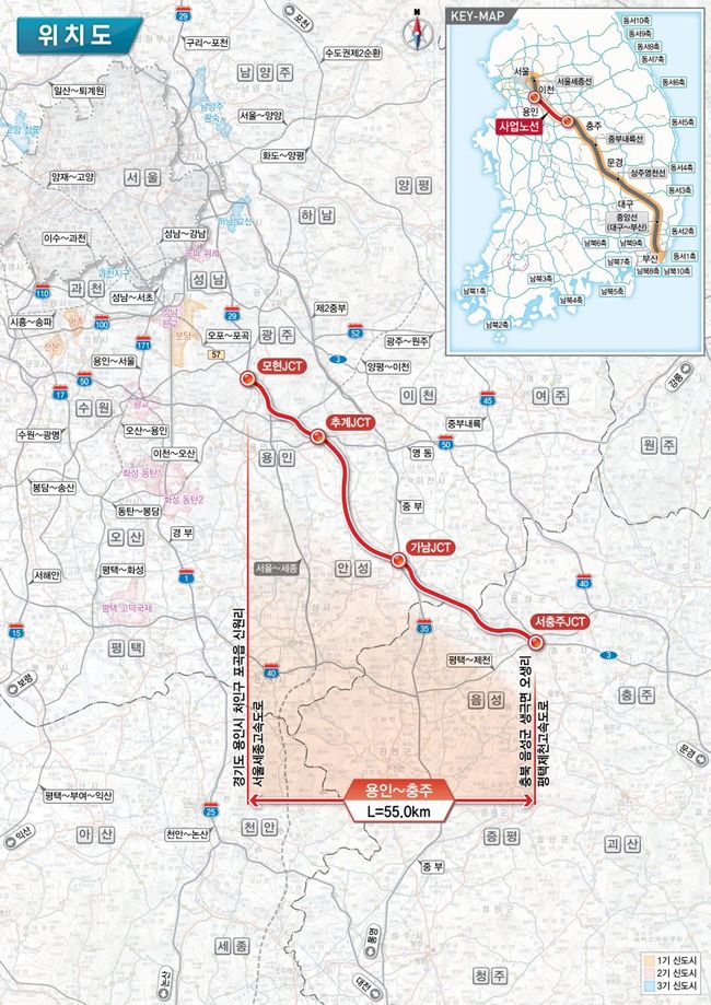 • 경기 용인~충북 음성 55㎞ 신설, 총사업비 2조5,617억원 규모