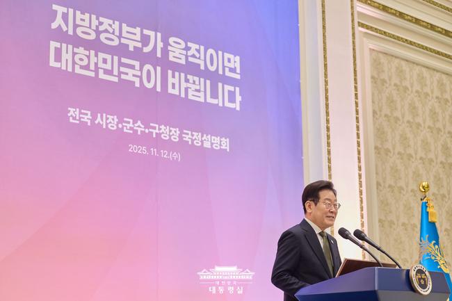 이재명 대통령은 청와대 영빈관에서 161명의 시장·군수·구청장이 참석한 국정설명회를 주재하며 지방정부가 행정의 중심이라는 점을 강조하고 지역 현안 건의를 직접 청취하며 국정 운영 방향을 공유했다.