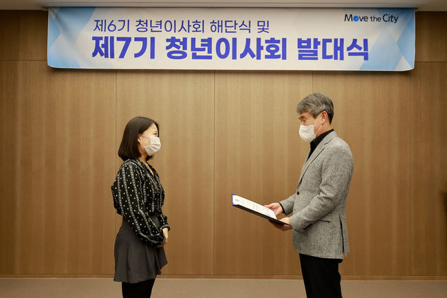 백호 서울교통공사 사장은 “청년이사는 젊은 직원들을 대표하여 회사의 현안을 찾고 문제를 해결하는 중추적인 역할에 있다”며 “회사의 주인이라는 생각을 가지고 적극적으로 의사결정에 참여하며 청년의 역할을 넓혀주길 바란다”는 격려의 말을 전했다.