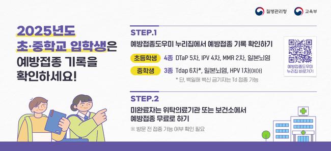 질병관리청은 2025년도 초·중학교 입학생들의 건강 보호를 위해 필수 예방접종을 완료할 것을 당부했다.
