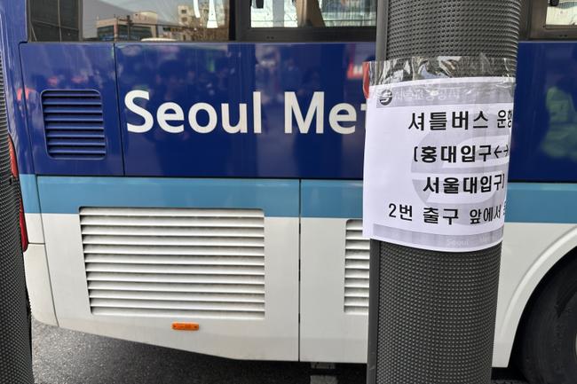 23일 오전 7시 50분경 발생한 서울 지하철 2호선 신도림역 탈선 사고로 인해 열차 운행이 9시간 가까이 지연되며 수많은 시민이 불편을 겪었다. 사진은 대체 버스 투입 안내문
